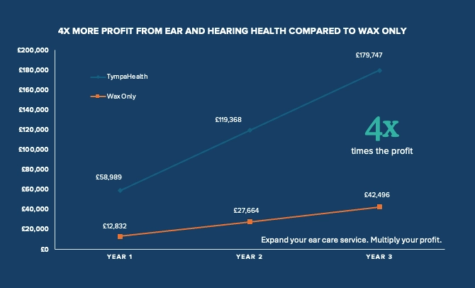 Because TympaHealth is the only fully comprehensive ear and hearing health solution, offering three revenue streams, pharmacies can achieve up to four times the profit of a wax-only solution.
